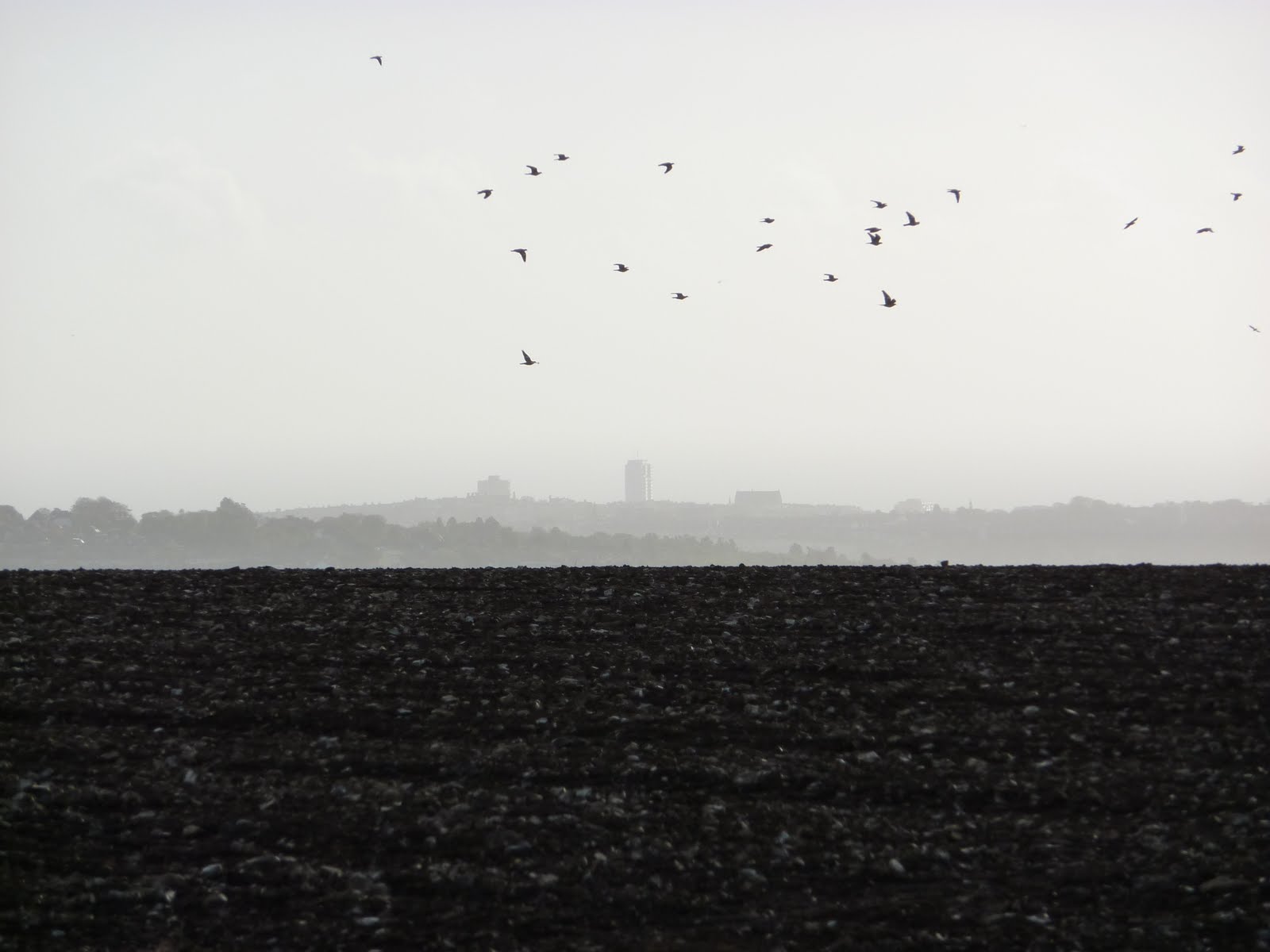 I returned to Ditches Road pretty near where I had left it, dodged some more SUVs and the occasional tractor, then walked past Chaldon\’s 11th Century Church (no camera this time, but I hope to remedy that in future stages). Past a couple of farms and then the most fantastic vista over the great closerleaf of the M23-M25 junction, with the M23 snaking through misty skies to the South.